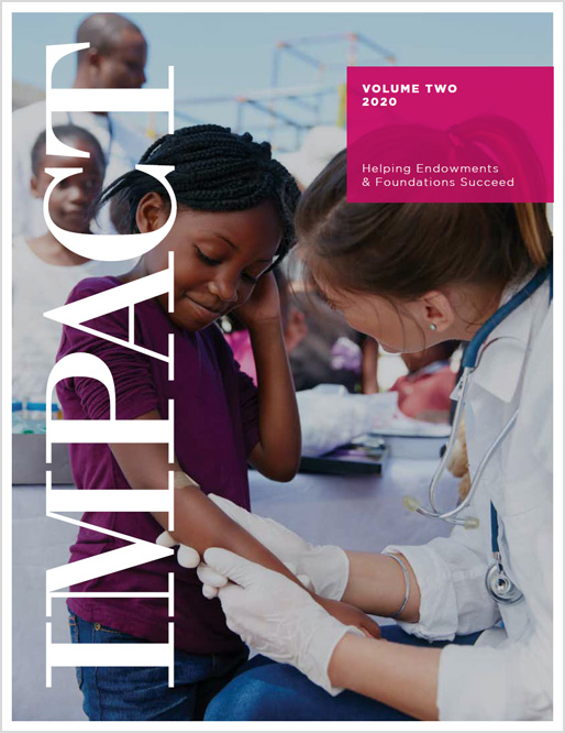 Non-profits, endowments, and foundations face many unique challenges, and never has it been more evident than this year. Organizations like yours are vital to helping our communities thrive, and we created this issue of Impact because we want to help you navigate this unique and ever-changing environment. This edition contains information on investing, fundraising, how to find and retain the right board and staff, and more.