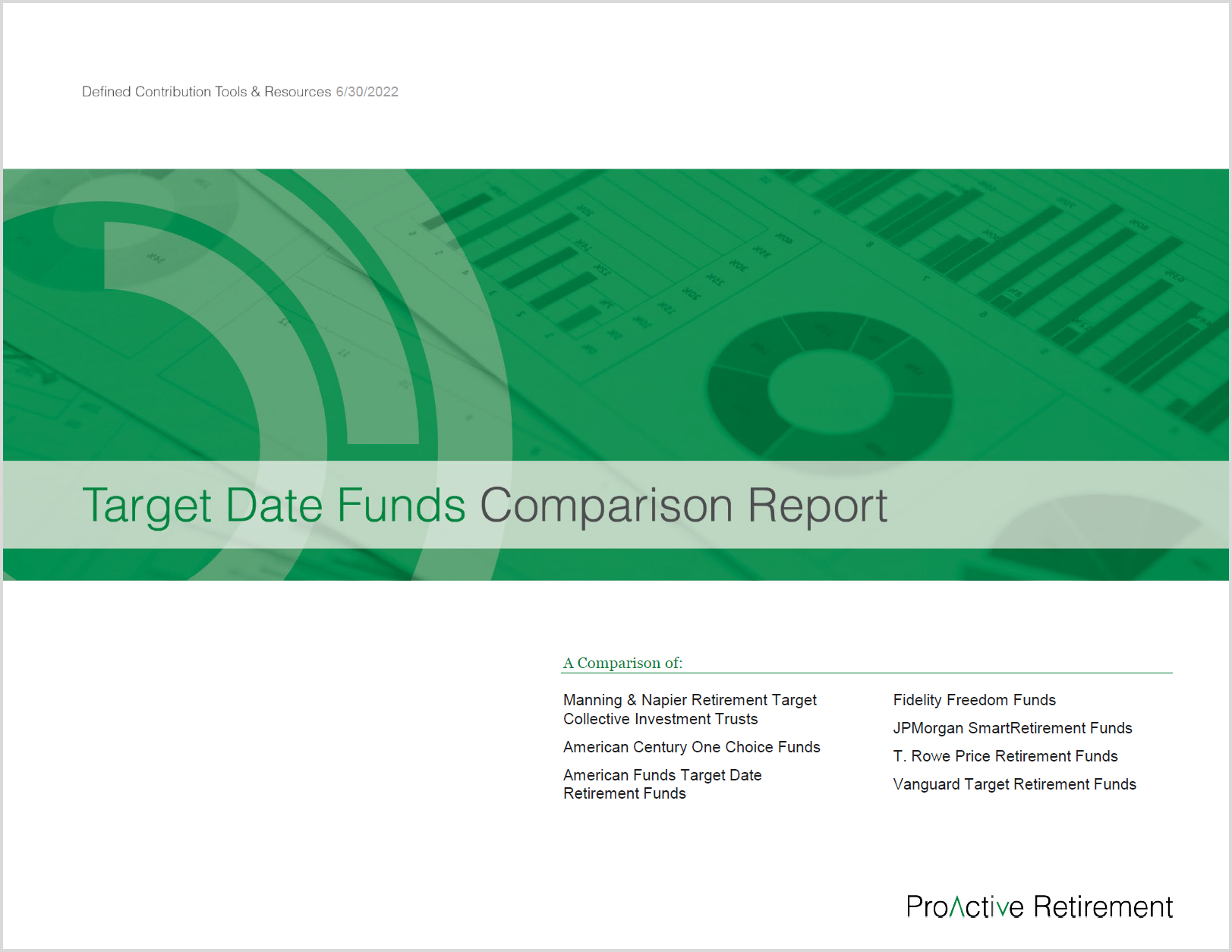 To help plan fiduciaries with their TDF selection and ongoing monitoring responsibilities, we've created a Multi Family Comparison Report. If you would like to learn more about effectively utilizing Target Date Funds download this report today.